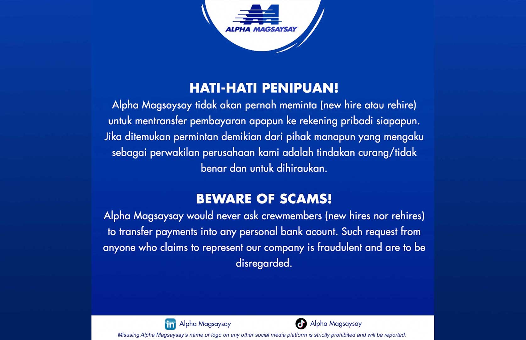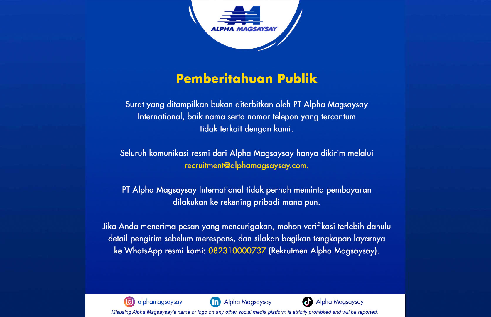 PT Alpha Magsaysay International maintains quality in everything we do.